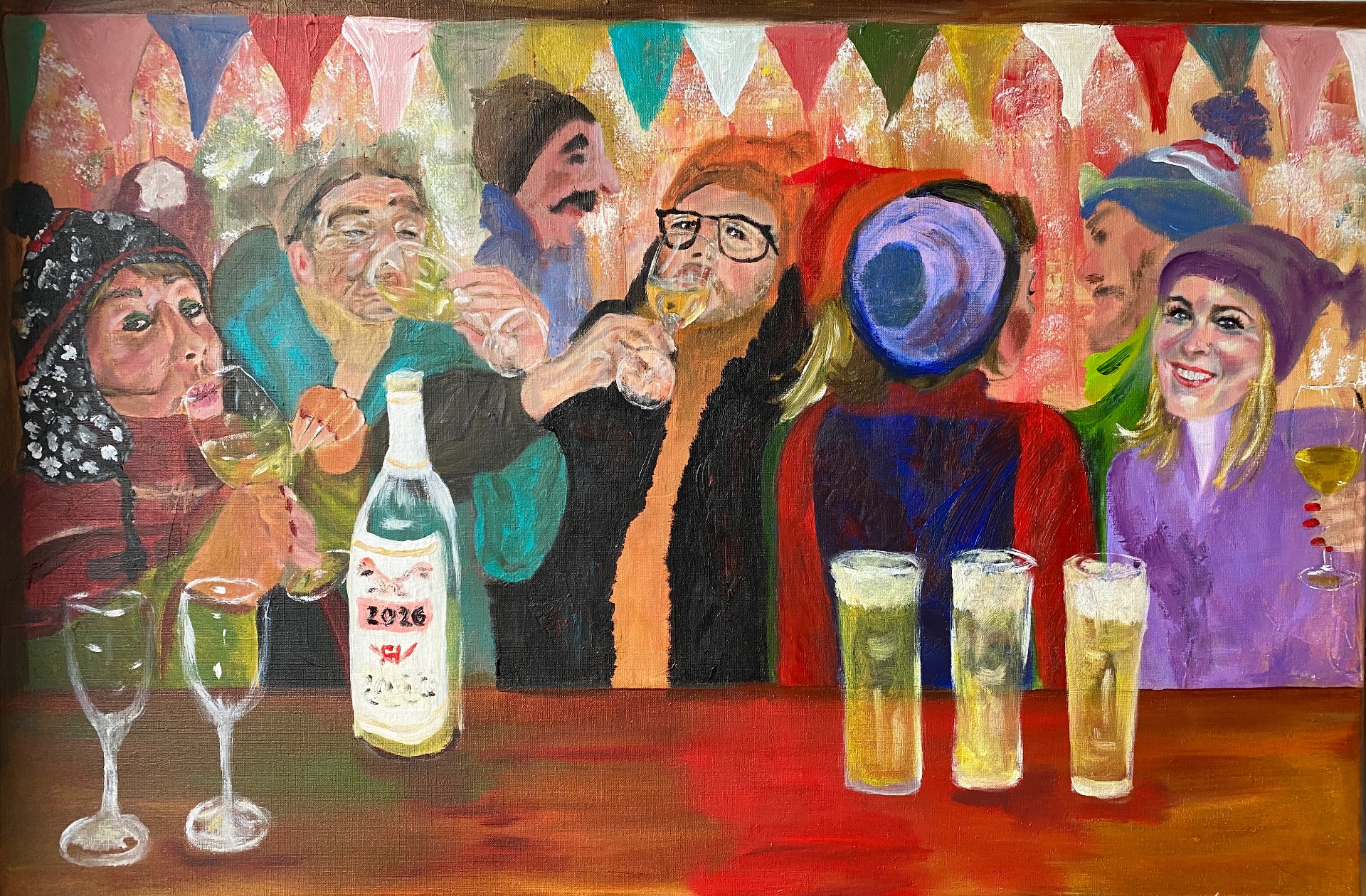 Apres-ski est une peinture de la série des peintures borrel. Peint en 2026. Signature dans la bouteille.